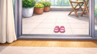 生活あるある 0287 オーバーサイズ俱楽部のハミ出しシューズ団あるある:ベランダサンダル、共有は無理です