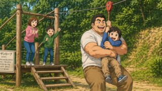 体が大きいとブランコに座れない!?メタポンパパが体験した公園デビューのリアルあるあるを短くユーモラスに紹介。