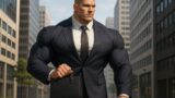 工場内で行われる入社式にスーツ姿で参加する、身長192cm・体重115kgの新入社員。競輪選手並みの太い太ももがスーツ越しにも分かり、周囲の新入社員より一回り大きな体格が際立っている様子。 ビジネス衣料